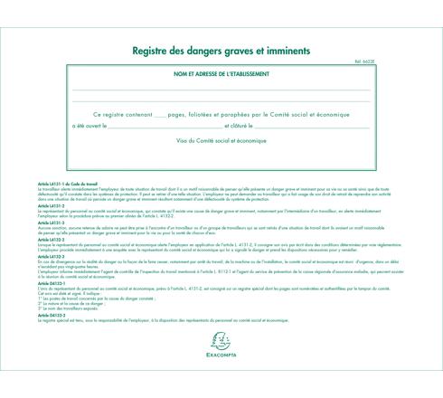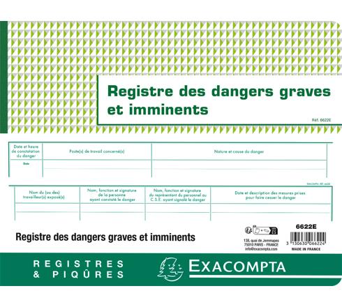 PIQÛRE 24X32CM - REGISTRE DES DANGERS GRAVES ET IMMINENTS - 20 PAGES