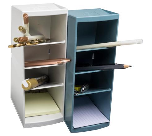 Its 4 compartments of different depths, from 8 to 11cm, allow you to use it as a pencil holder, store your highlighters, scissors, sticky notes, telephone or various small accessories. Usable upright or lying down and juxtaposable, you can clip several products together using the clips provided. This will allow you to optimise your organisation and increase your storage capacity.