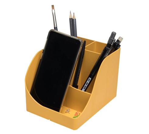 Thanks to its 5 compartments of different heights, it offers a large storage capacity: 4 high compartments for large utensils, scissors, pens etc, and 1 low compartment for small objects such as paper clips, thumbtacks, a USB key or even for placing a cell phone.
