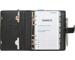 Porte-stylo en cuir. Vendu complet avec sa recharge ainsi qu'avec intercalaires alphabétiques, feuilles de notes et feuilles répertoire téléphonique, pochette zippée pour ranger ses documents importants, 2 pochettes pour ranger ses cartes de visites, avec une règle souple transparente et un bloc quadrillé.