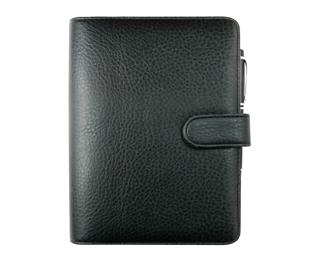 Porte-stylo en cuir. Vendu complet avec sa recharge ainsi qu'avec intercalaires alphabétiques, feuilles de notes et feuilles répertoire téléphonique, pochette zippée pour ranger ses documents importants, 2 pochettes pour ranger ses cartes de visites, avec une règle souple transparente et un bloc quadrillé.