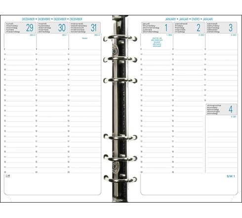 Une matière grainée pour une collection incontournable. Fermeture par bouton pression. La semaine sur 2 pages à la verticale - amplitude horaire du lundi au vendredi 8h à 20h, samedi 8h à 13h et espace de notes pour le dimanche. Papier blanc impression en bleu et gris. Vendu complet avec sa recharge certifiée Imprim Vert et PEFC 100%, ainsi qu'avec intercalaires alphabétiques, feuilles de notes et feuilles répertoire téléphonique et avec une règle souple transparente. Produit rechargeable grâce à ses 6 anneaux.