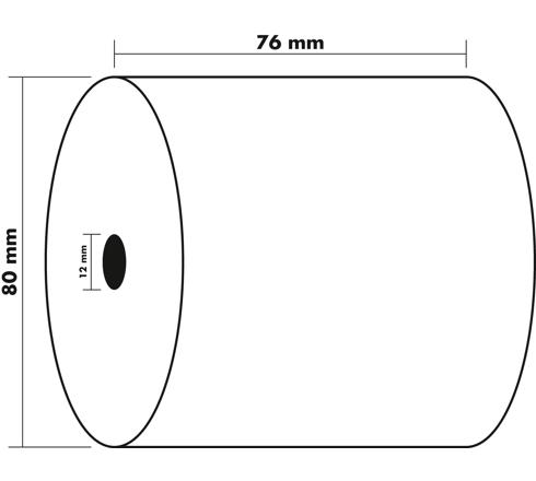 76mm width and 80mm diameter card machine rolls for use with cash registers and payment tills that require an ink cartridge or ribbon. Each till roll is 54m in length (+ or - 2m) for less roll changes.