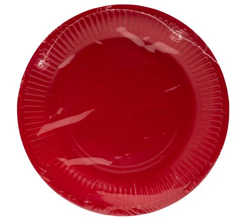 20 ROUND CARDBOARD PLATES, Ø 23 CM - RED