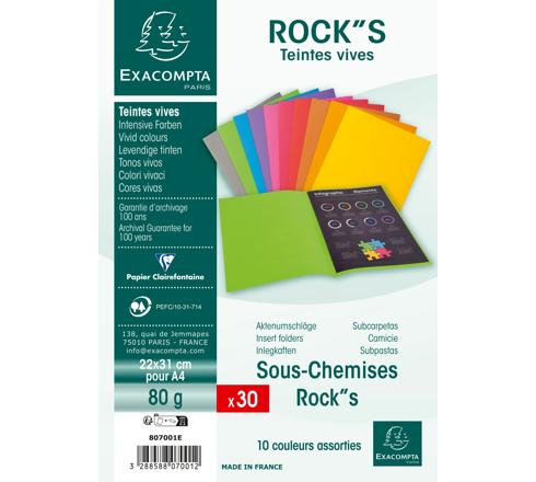 PACK OF 30 INSERT FOLDERS ROCK"S 80- 22X31CM - ASSORTED COLOURS