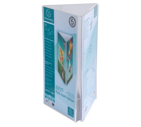 Sign holder triangular DL The Exacompta triangular sign holder is ideal for displaying your photos or documents on a table, desk or shelf. Can be used on 3 sides, so it can highlight 3 visuals and can be used both horizontally and vertically. Made from high quality acrylic (PMMA) with very high transparency to display your visual. Made in Europe, it is guaranteed for 5 years and is UV resistant so it will not yellow You can easily create your personalised signs in the right size with KREAMAN on www.exacompta.com