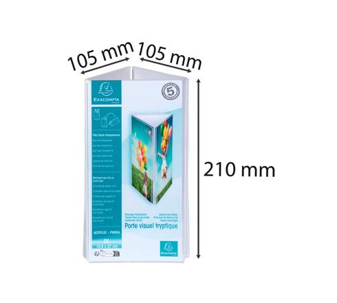 Sign holder triangular DL The Exacompta triangular sign holder is ideal for displaying your photos or documents on a table, desk or shelf. Can be used on 3 sides, so it can highlight 3 visuals and can be used both horizontally and vertically. Made from high quality acrylic (PMMA) with very high transparency to display your visual. Made in Europe, it is guaranteed for 5 years and is UV resistant so it will not yellow You can easily create your personalised signs in the right size with KREAMAN on www.exacompta.com