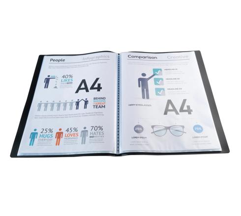 PROTÈGE-DOCUMENTS EN POLYPROPYLÈNE SOUPLE OPAK 80 VUES - A4 - NOIR