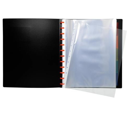Le protège-documents à anneaux possède des pochettes détachables pour modifier facilement l'ordre du classement. Il possède également 5 intercalaires amovibles et un porte-étiquette sur la couverture pour identifier facilement le contenu.