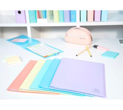 Chromaline Pastel Display book, 40 pockets semi-rigid PP A4 Following the success of the very popular Chromaline range in schools and offices, Exacompta is launching Chromaline pastel, an assortment of soft colours for a zen and fun atmosphere. For the home office or school, find the essentials of translucent polypropylene filing in trendy colours which match the Aquarel range. These display books allow you to easily leaf through documents. Soft translucent cover. High transparency smooth crystal clear pockets 80 views. A4 size.