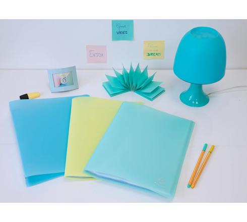 Chromaline Pastel Display book, 40 pockets semi-rigid PP A4 Following the success of the very popular Chromaline range in schools and offices, Exacompta is launching Chromaline pastel, an assortment of soft colours for a zen and fun atmosphere. For the home office or school, find the essentials of translucent polypropylene filing in trendy colours which match the Aquarel range. These display books allow you to easily leaf through documents. Soft translucent cover. High transparency smooth crystal clear pockets 80 views. A4 size.