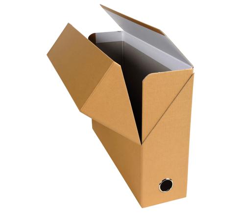 En carton rigide recouvert de papier toilé teinté, cette boite transfert est très pratique pour archiver proprement tous les dossiers volumineux.