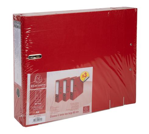 LOT DE 3 CLASSEURS À LEVIER - DOS DE 80MM - FORMAT A4 - EXTÉRIEUR EN POLYPROPYLÈNE / INTÉRIEUR EN PAPIER - ROUGE