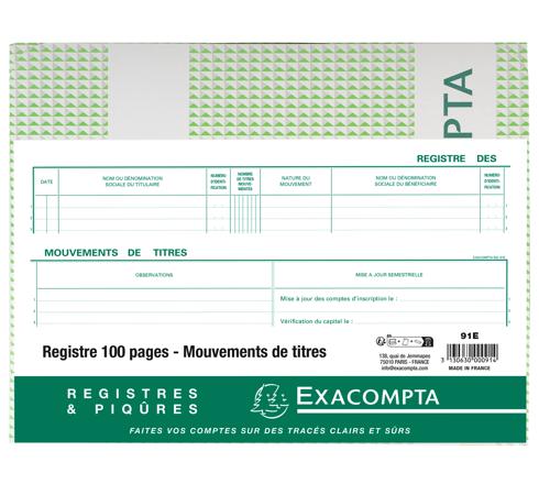 Le registre des mouvements de titres répertorie tous les transferts d'actions intervenus (cessions, donations, apports des actions) et de tout autre type de titres (actions convertibles, obligations, etc.) qui seraient émis par la société. Certains praticiens y retranscrivent également les créations d'actions nouvelles lors des augmentations de capital. Il est obligatoire pour les SA et indispensable pour les SAS.