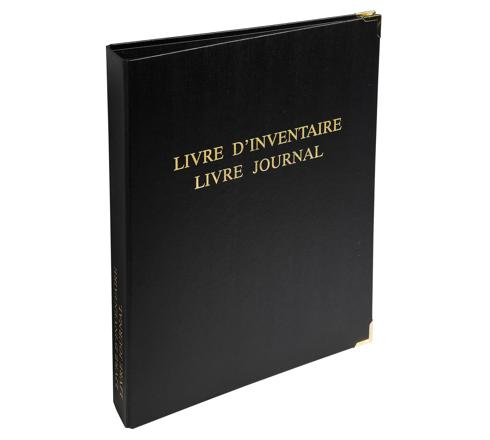 100 feuillets numérotés pour livre d'inventaire + 50 feuillets numérotés pour livre journal - Impression du titre en doré sur la couverture et la tranche du dos