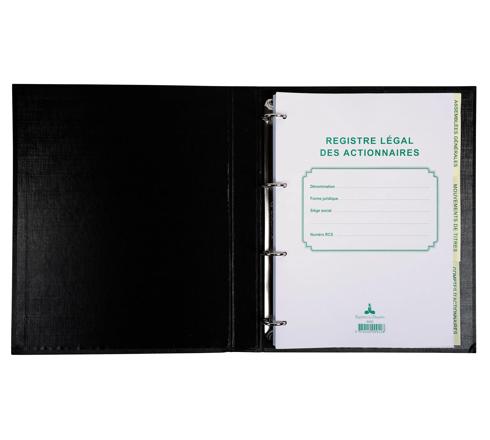 Classeur juridique noir - dos de 37mm - 4 anneaux - Registre légal des actionnaires