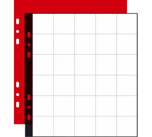 Chaque feuille plastique est complétée d'un intercalaire en carte rouge permettant de faire ressortir les visuels des pièces présentées.