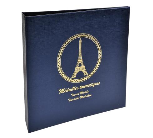 Ring binder set with navy blue balacron-grain cover. Ideal for holding medals often bought at tourist attractions.