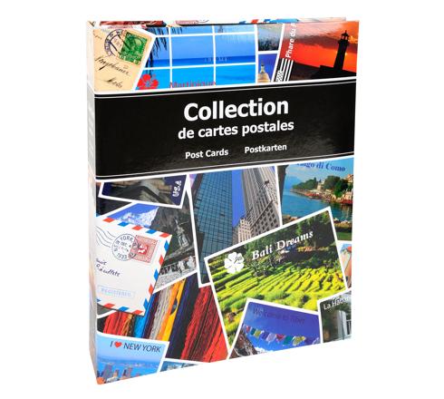 Album de collection pour cartes postales avec couverture en carton imprimé pelliculé brillant.