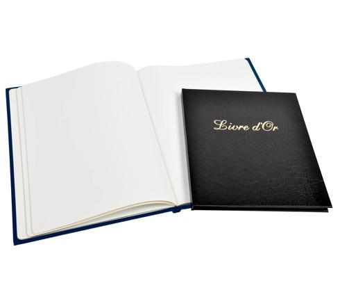 A simplistic guest book for French language speakers. Assortment of blue, red and black covers.