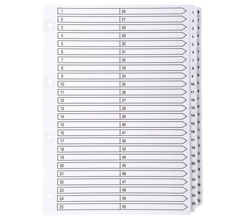 INTERCALAIRES IMPRIMÉS À TOUCHES PLASTIFIÉES - 50 TOUCHES 1 À 50 - A4 - BLANC