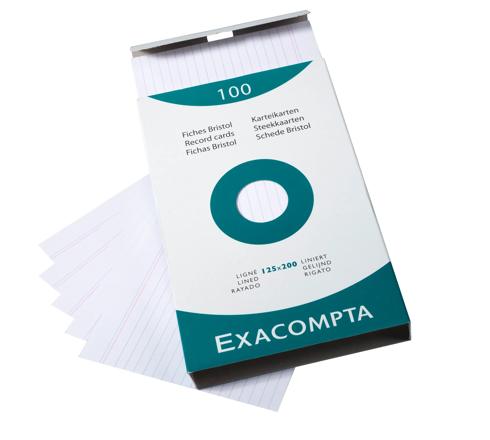 Record Cards Pack 100 White 125X200 Lined Exacompta Bristol record cards and made from Clairefontaine paper which is compatible for inkjet and laser printing and photocopying Each type of record card is presented in a different colour case to be easily recognisable and convenient to use Packs of index cards in a box are available individually Weight 205gsm