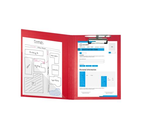 Ce porte-bloc à rabat est fabriqué en carton rembordé résistant. Il est suffisamment rigide pour permettre la prise de note en toute situation.