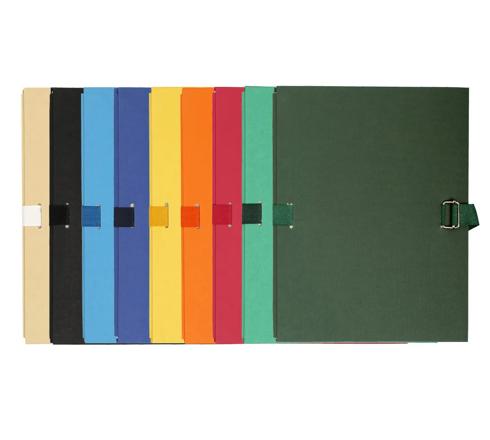 La cinta permite mantener con cuidado los documentos juntos. La carpeta en papel textura tela es la más económica de las carpetas con lomo extensible son cinta. Tapa en pape teñido.