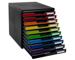 Los módulos A4 de Exacompta cuentan con cajones cerrados que permiten mantener los documentos libres de polvo. Deslizamiento perfecto de los cajones, con stop de seguridad, tirador de cajón confortable y porta-etiqueta.