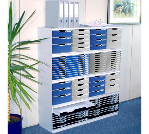 Los módulos A4 de Exacompta cuentan con cajones cerrados que permiten mantener los documentos libres de polvo. Deslizamiento perfecto de los cajones, con stop de seguridad, tirador de cajón confortable y porta-etiqueta.