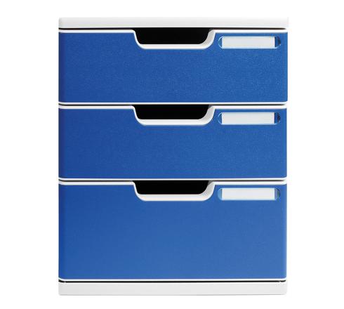 MÓDULO A4, CAJONES CERRADOS + 3 ALTURAS + STOP DE SEGURIDAD, TAMAÑO: 1X110MM + 2X82 MM OFFICE - AZUL