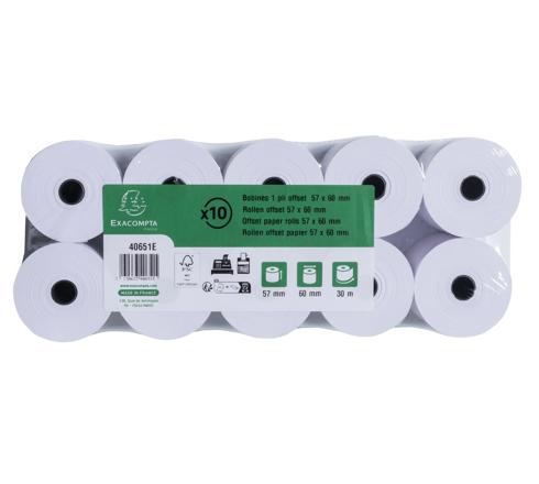 BOBINE POUR MACHINE À CALCULER ET CAISSES 57X60 MM - 1 PLI OFFSET EXTRA- BLANC 60G/M2. - BLANC