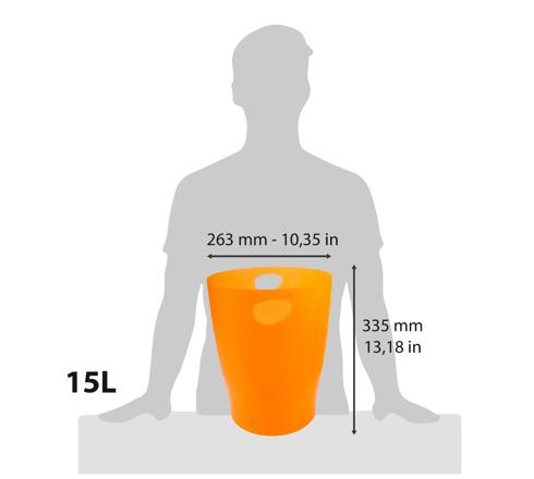 La papelera ECOBIN, cuenta con una capacidad de 15 litros. Sus asas están integradas para facilitar su transporte y vaciado, interior es fácil de limpiar.