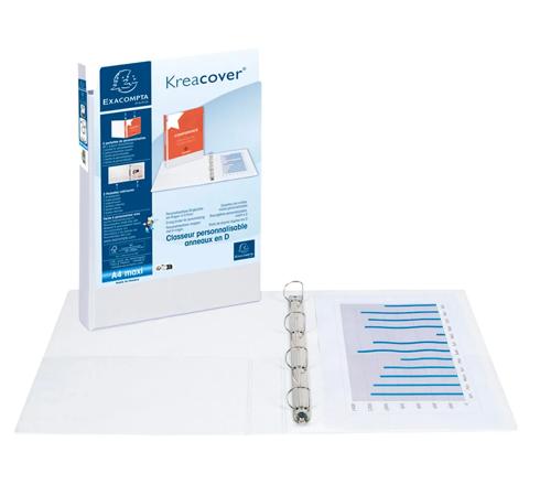 CLASSEUR PP PERSONNALISABLE KREACOVER - 4 ANNEAUX EN D 20MM - A4 MAXI - BLANC