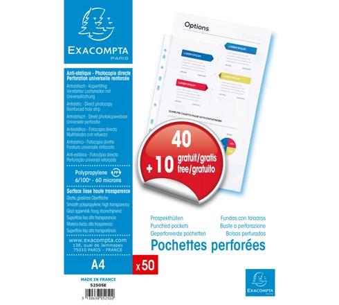 SACHET DE 50 POCHETTES PERFORÉES POLYPROPYLÈNE LISSE 6/100E - A4 - CRISTAL
