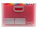 Pestañas porta-etiquetas. Compartimientos son multicolores. Cubierta : Polipropileno 10/10 e . Interior : Polipropileno 20/100 e . Tamaño 33x23 ,5x25 cm para A4. Compartimentos: 24.