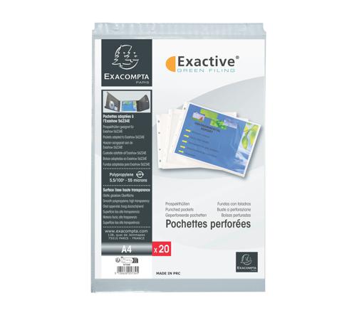 BOLSA DE 20 FUNDAS CON TALADROS EXACTIVE® A4 5.5/100E - CRISTAL