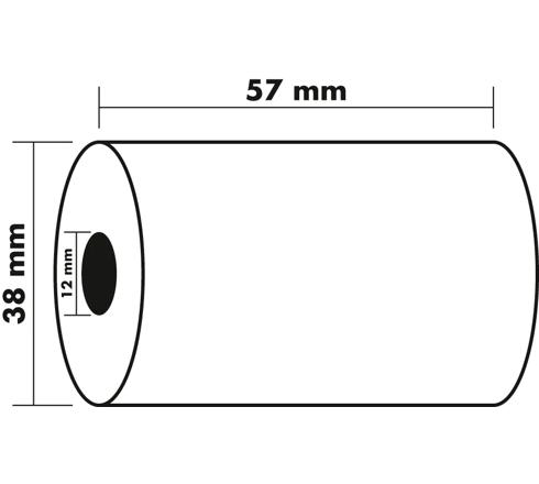 Formato de la bobina: 57 mm de ancho y 38 mm de diámetro. Longitud (+ o - 2m): 11,5 m. Mandril estándar de 12 mm.