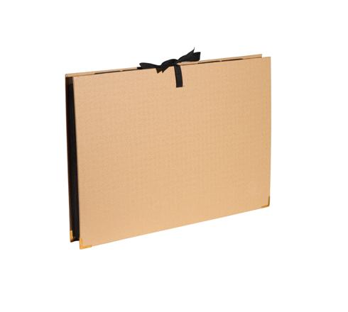 Se proporcionan etiquetas adhesivas para pegar en las pestañas. Cierre de cinta y cantoneras de metal dorado para reforzar la funda.