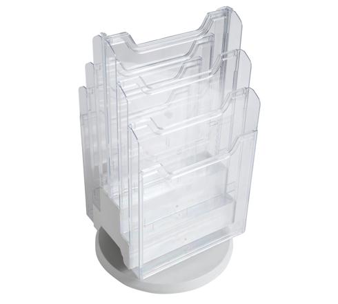 Distribuidor de folletos rotativo de mesa A4 de Exacompta le permite colocar sus folletos o trípticos sobre una mesa, escritorio, etc.