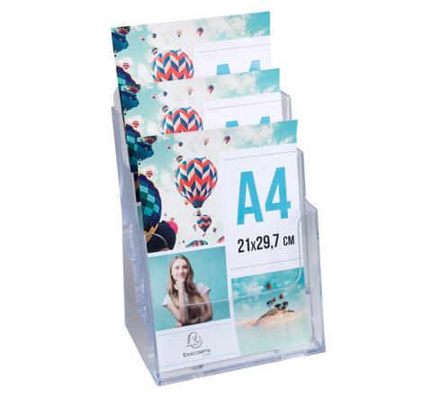 El distribuidor monobloc en poliestireno transparente de Exacompta te permitirá colocar tus documentos, folletos,... en una perfecta exposición.