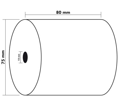 Formato de la bobina: 80 mm de ancho y 70 mm de diámetro. Longitud (+ o - 2m): 72 m. Mandril estándar de 12 mm. Apto para cualquier marca de caja térmica.
