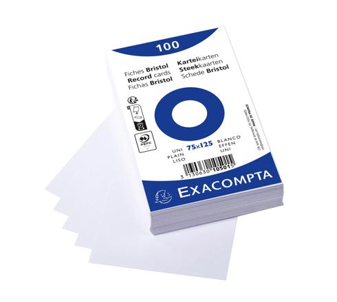 PAQUET 100 FICHES SOUS FILM - BRISTOL UNI NON PERFORÉ - 75X125MM - BLANC