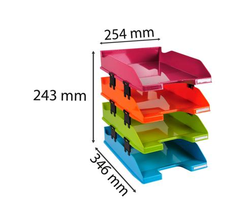 Set de 4 corbeilles à courrier pour documents au format A4+. Ces corbeilles à courrier sont solides et stables. Elles sont superposables à la verticale ou en escalier et est modulable à souhait, compatible avec de nombreux modèles existants.