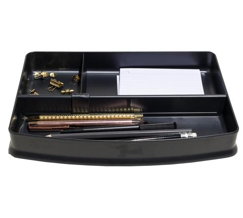 Ses séparateurs intégrés et complètement modulables permettent de ranger au dessus de ses papiers, tous les petits ustensiles de bureau que vous souhaite. En enlevant les séparateurs, vous pouvez également y ranger de petits documents format A5+