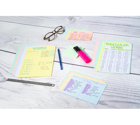 Le type de fiches (quadrillées, unies, perforées, imprimées, couleurs assorties) peut être facilement identifié grâce à la couleur du packaging.
