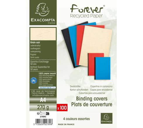 PAQUET DE 100 COUVERTURES GRAIN CUIR POUR RELIURE A4 - COULEURS ASSORTIES