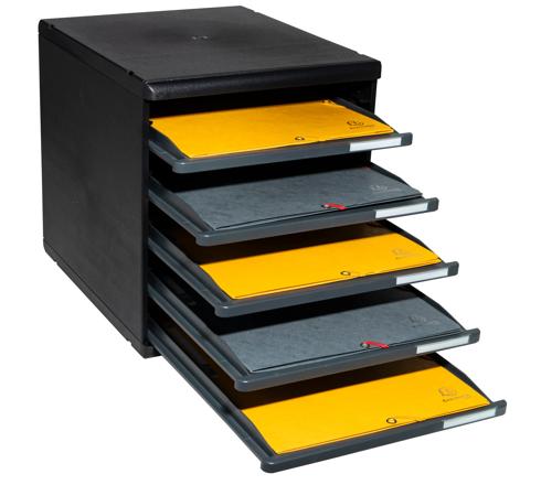 MODULE DE CLASSEMENT MODULO ECOBLACK 5 TIROIRS OUVERTS - GRIS FONCÉ