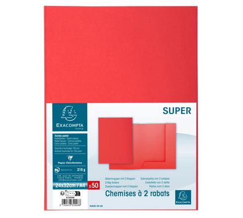 PAQUET DE 50 CHEMISES 2 RABATS SUPER 210 - 24X32CM - ROUGE