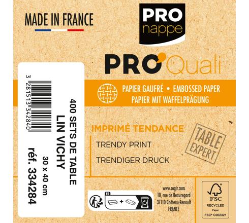 BARQUETTE DE 400 SETS DE TABLE PAPIER GAUFRÉ RECYCLÉ 80G/M2, LIN VICHY - FORMAT 30X40CM - LIN VICHY